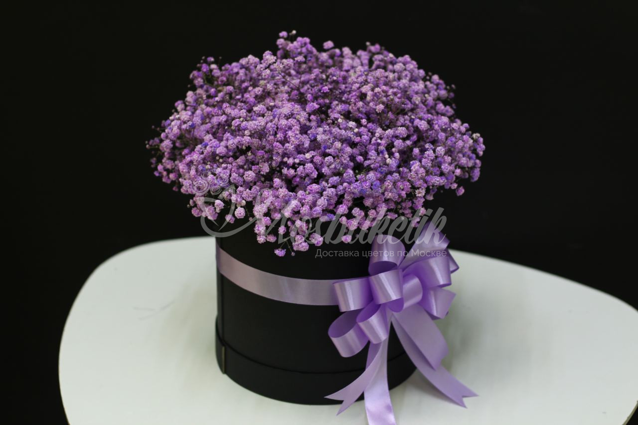 19 фиолетовых гипсофил в коробке