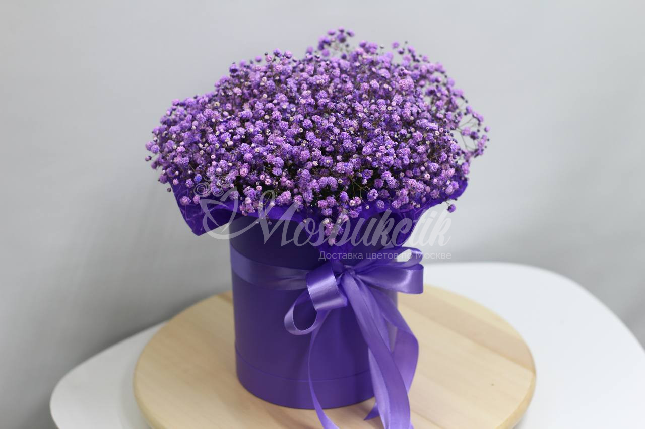 Фиолетовые гипсофилы – это прекрасный способ выразить свои чувства и принести радость вашим близким. Невероятно красивый и нежный букет, упакованный в стильную коробку, станет оригинальным подарком к любому празднику или просто для того, чтобы порадовать своих близких в любой день.