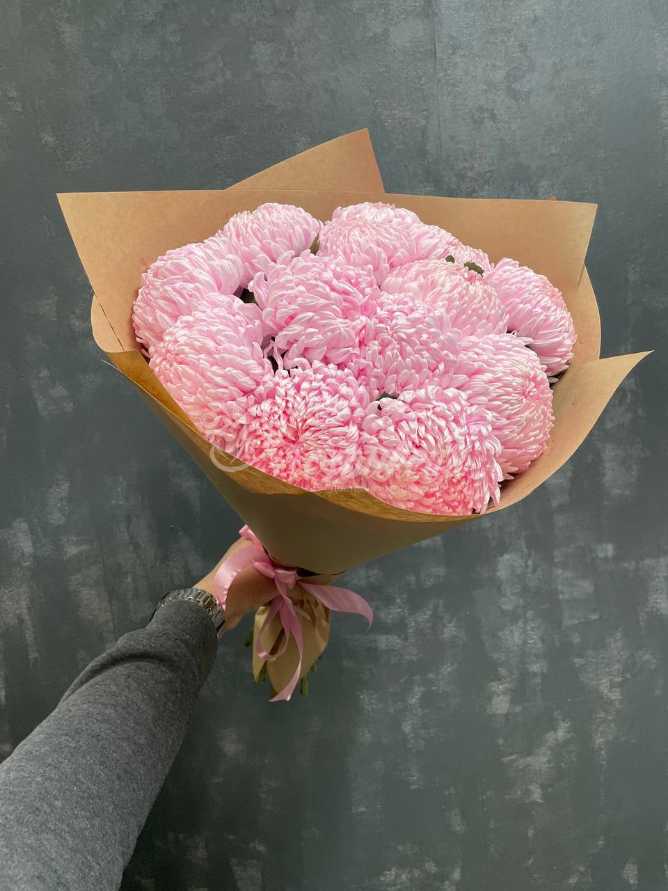 Коллекция роскошных букетов представляет вам замечательное сочетание из 11 крупных нежных розовых хризантем, упакованных в стильный крафт. Создайте атмосферу уюта и тепла с этим невероятно красивым букетом, который станет идеальным подарком для ваших близких или любимых. Уникальный дизайн и неповторимое сочетание цветов сделают этот букет незабываемым акцентом любого интерьера. Закажите сейчас и создайте моменты счастья и радости вместе с нами!
