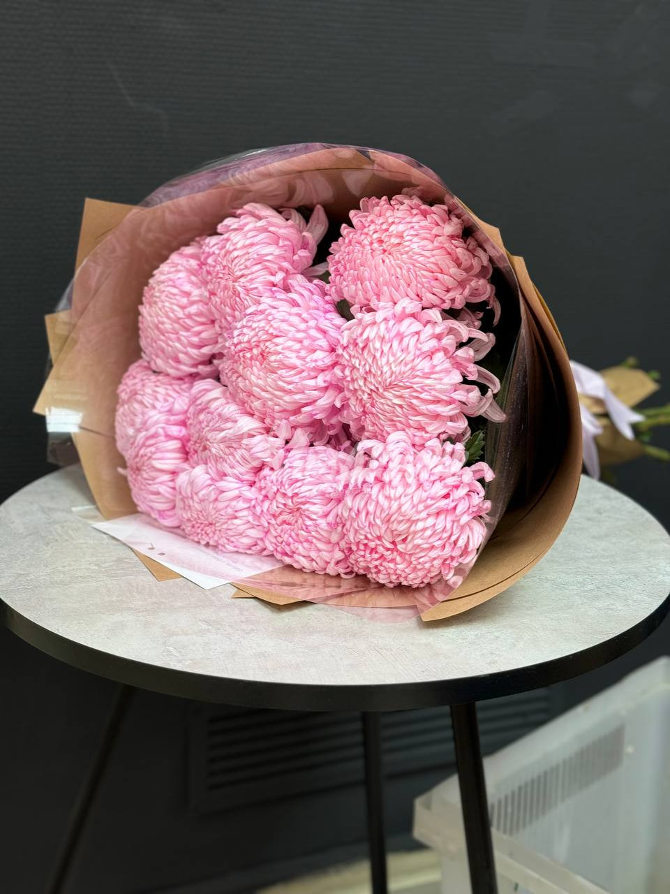 Букет из 11 розовых хризантем в крафте