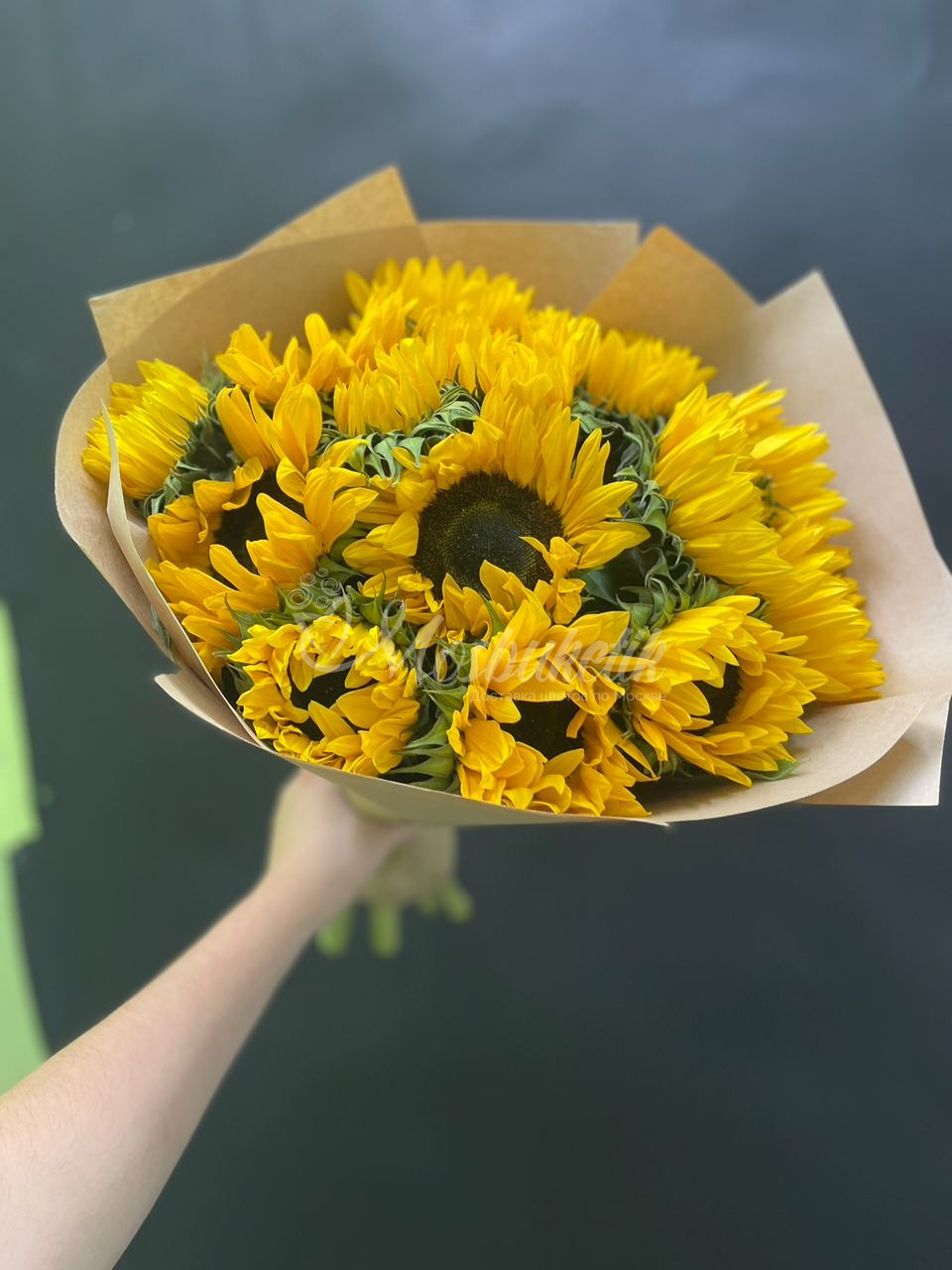 Наши цветы всегда свежие и красивые, а благодаря внимательному уходу наших флористов, букет из 19 подсолнухов будет радовать вас долгое время. Подсолнухи — символ радости и счастья, поэтому этот букет станет отличным подарком для любого случая.