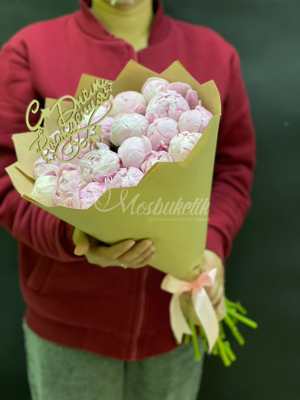 Этот изящный букет состоит из 19 пышных розовых пионов, излучающих нежность и красоту. Пионы тщательно подобраны по размеру и цвету, создавая гармоничную композицию, которая станет прекрасным украшением любого интерьера.