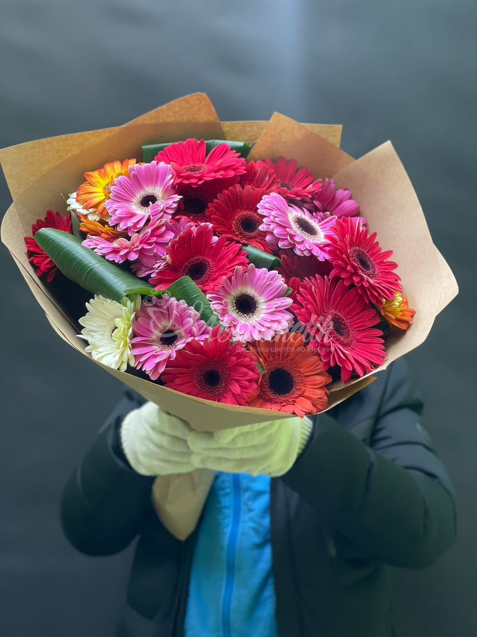 Герберы символизируют радость, счастье и искреннюю улыбку, поэтому такой букет будет всегда уместен и приятен. Этот яркий и красочный букет станет прекрасным дополнением к интерьеру дома или офиса, а также замечательным аксессуаром для фотосессии.