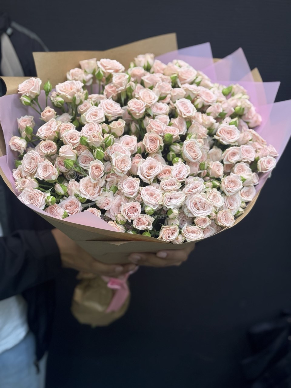 Состав:  Кустовая роза — 29, Упаковка — 1, Лента.